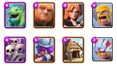 过河的军队肉盾远程搭配好留好骷髅海箭雨或者胡子防对门偷你另外一个塔。对门如果偷你的时候你确实没有法力你就会发现你的靠前哥布林房子也可以配合防御塔守住对门的王子野猪气球等他们打爆哥布林房子你的法力也应该够下一条龙或者骷髅海胡子了。磨个两波接触你都会发现鱼塘里的新手会犯错要不然是费丢光了要不然是贸然进攻被你后手克制牌加防御塔清怪反打一波直接破路。你这个时候记住破了一个塔你就已经赢了立马做好防守准备不追求3皇冠只追求赢了对手得30分天梯冲上去你才有好卡。