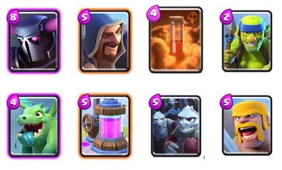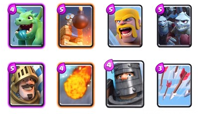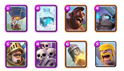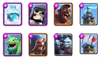 重要卡:火枪手(如果你没有法师),石头/大骷髅/巨人(肉盾三选一),火球,万箭齐发