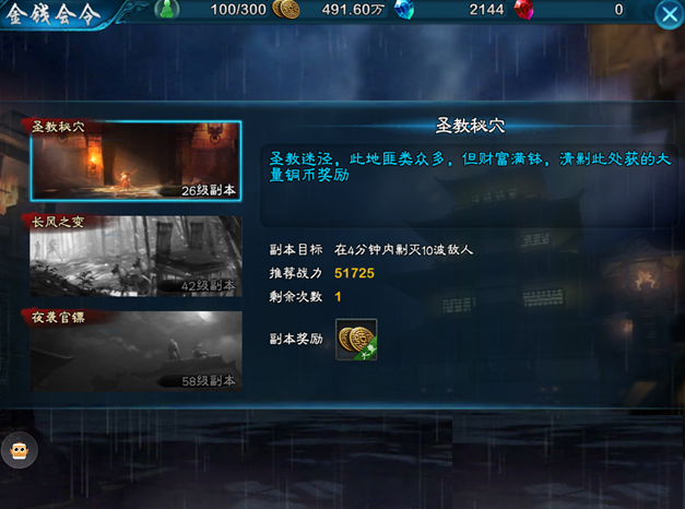 金钱密令也比较简单,也是个人任务,只需要推荐战力即可过关。