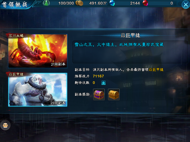 拿焱巨甲猿来说,仅仅需要7W的战斗力,其实所需要的战斗力则是3倍。即三个人组队并且都是7W战力才有机会过关,但是那样也非常的困难。