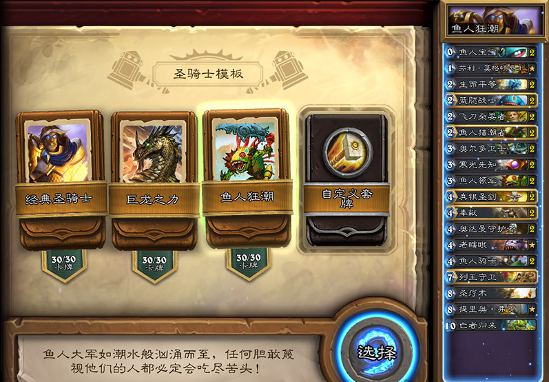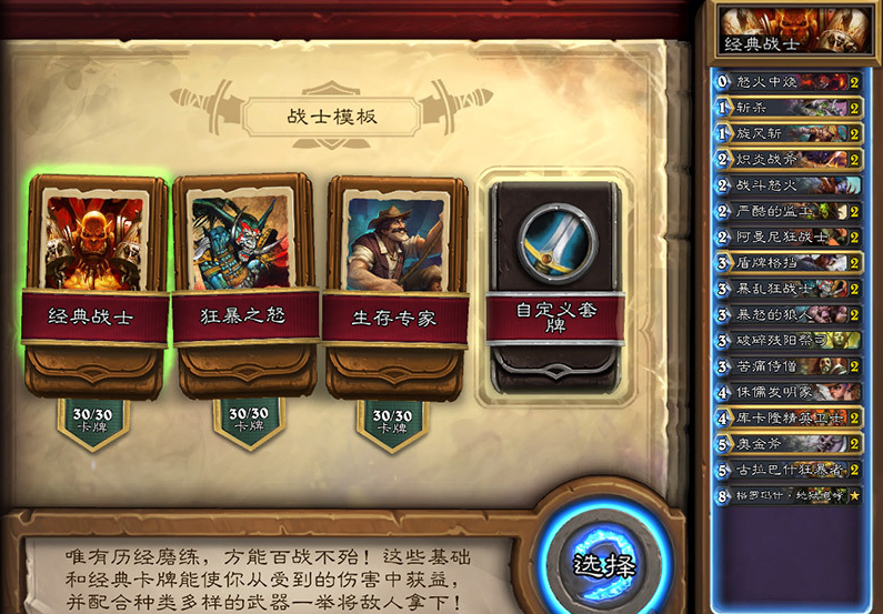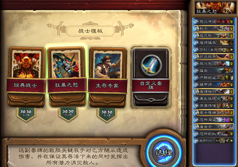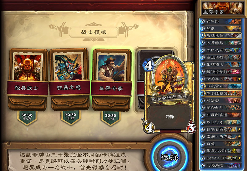 本次4.2补丁更新加入了上次预告的卡组模板系统,每个职业拥有三套模板,在汇总完后,本次的推荐的大多数卡组没有想象中的那么坑爹,比如术士的推荐中就有手牌术、战士的推荐中有奴隶战等等。下面就跟随西西一起来看看吧!