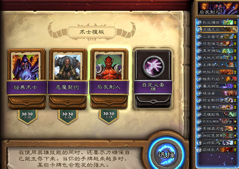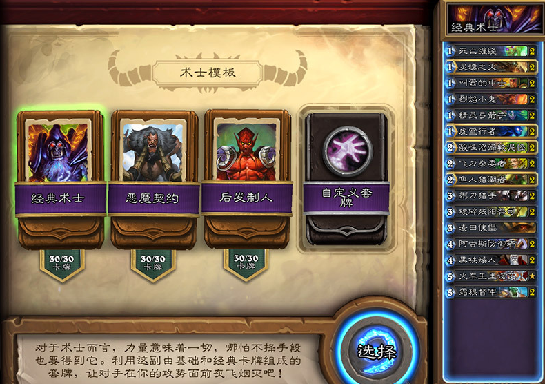 各职业预设卡组模板汇总 手牌术奴隶战