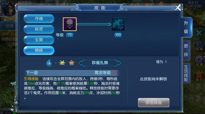 恢复异人和自己所有鬼灵气血值,并将怪物对自己仇恨的20%转给鬼灵。(前置技能:聚怪引1级)
