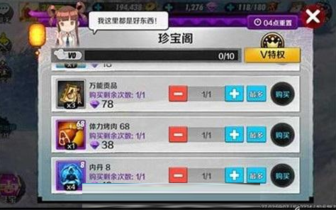 体力用完之后,可以花费50钻石购买两次体力。除此力之外,在前期能够获得体力的,还有珍宝阁的体力烤肉,38钻石可以购买1次,使用后立即获得68体力。平时要多加好友,与好友之间互送体力。
