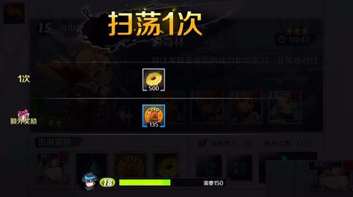已经通关了的关卡,就不需要重复打了,可以直接进行扫荡,如果你有V特权,还可以一次性扫荡多次,扫荡可以获得很多的经验,不过扫荡是需要体力的要注意,