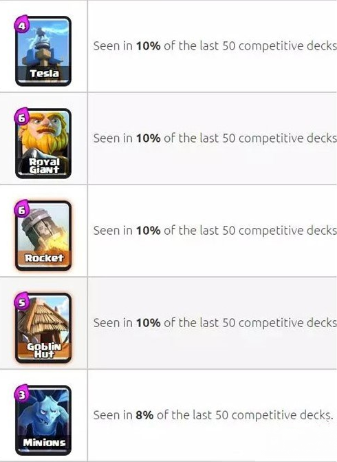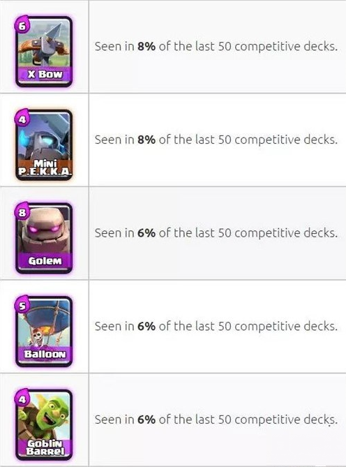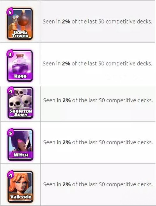 部落冲突皇室战争卡牌使用率排行榜 X弩使用率崛起