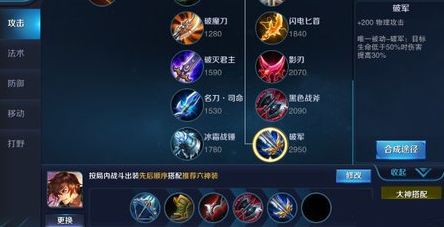 四件:出黑色战斧,破军的价格较为高昂,在中后期大型团战,争龙较为激烈,战斧所带来的效果全面而且更能针对、适应此时的需要