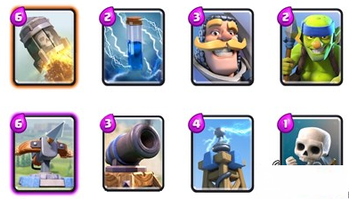 有经验的玩家应该可以看的出来,这套牌的速度非常快。前期能不能赚到圣水再下弩真的就要看运气了,不过要是起手有弩恰好对面又先放个7费房子或者塔后放个石头人的话,不废话直接最大射程对位下弩。因为这套牌过牌很快,所以想放2保1甚至3保1塔阵的话很容易,看好对方箭塔血量用火箭收割,除此之外,火箭也完克遇上对面也是X弩的选手,所以尽量不先手。防守时灵活运用低费牌和对方周璇,多遛狗就好。。