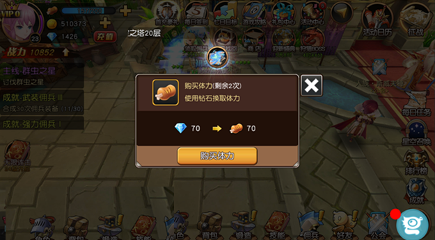 体力购买是不用说了,为了我们更快更好的发展,等级的提升是至关重要的,所以只要我们有多余的钻石都需要花费在鸡腿和重置副本上。这样不仅仅可以快速的提升我们的等级,之后获得的资源也会比别人多一些。比如各个商店的币。