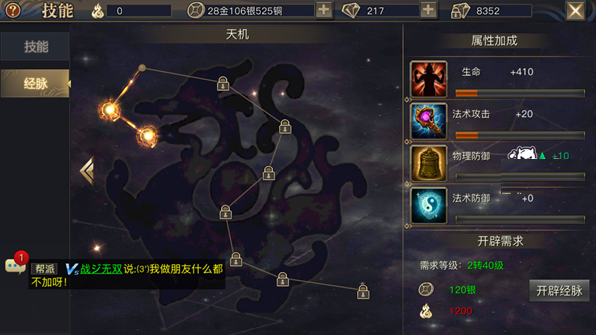 等到一定等级,会开通经脉,大概是200-250左右,对战斗力的提升有大幅度提升,当然也是能升就升。