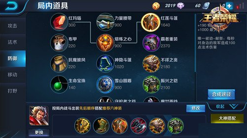核心装:军团圣盾+影忍之足+红莲斗篷