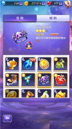 首先再次强调这个破坏王指环是专属于魔力可可的宝物,玩家们从效果上就可以看出端倪,这个宝物确实和魔力可可搭配最为有效,简直就是得分利器啊。虽然这个宝物不能直接增加能量获得,但是这个宝物的效果胜在和魔力可可搭配之后冲击障碍物的同时快速上分。这样的效果相比于急速轮滑鞋那样的宝物来说也毫不逊色,缺少是不可多得的强力宝物。
