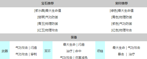 宝石的镶嵌,主要以提高气功攻击为主。作为拳师的一般搭配,也可以配合一些提高生存能力的最大生命宝石。