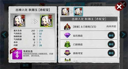 升星上,秋湘玉的关卡掉落是英雄的土门客栈。另外的获得途径就是钻石商店、门派商店、高级寻宝和任务。总体来说,升星难度一般。