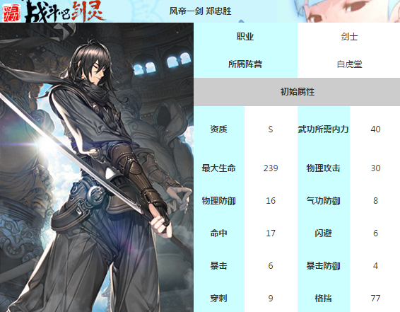 战斗吧剑灵郑忠胜人物简介: