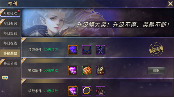 随着玩家等级的提升,只要达到指定要求,即可在“等级奖励”面板领取一份对应的等级奖励,奖励价值十分丰厚哦!