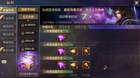 升级大礼:将角色等级提升至指定等级,即可领奖;