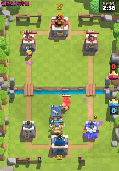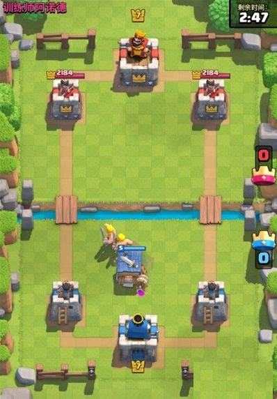 一般来说前两分钟是拿不到皇冠的基本,那么前两分钟就安心防守吧。房子尽量不要放在底部,放在中间,这样可以吸引野猪气球火力。起手除非对面下塔,否则不要下房子,特别是墓碑和黄毛房子,就是对面下塔了,也不能太急着下这两个。第一个房子,一般是拿来防守的,所以放个蹭血的哥布林小屋最好,放这个位置最好,这边是训练营就随便下了,开局这样下很容易输千万别……