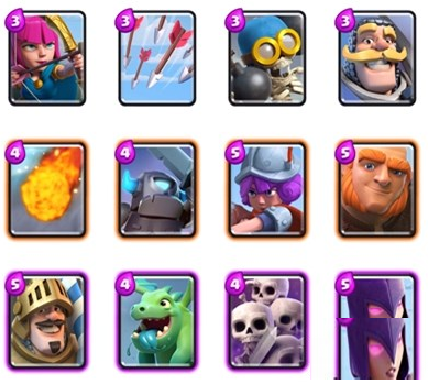 新手们大可不必为此纠结而从新练,除非你个人特定喜欢某种卡牌。在以后的游戏中,所有紫卡都会慢慢累积到。但是对于新手来说,很多人抱怨他有王子,好厉害,我没有。。他有女巫,好牛逼,我没有。他有龙,我没有。其实所有新手不管是谁,都不例外,每个人只能获得4张紫卡中的1张。现在我给大家分析4张紫卡的优势和劣势: