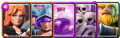 3)三个火枪手:三个火枪手(简称三枪)的确是游戏中最巨大的卡了,哦,我指的是它的圣水消耗。10点圣水,让你在很久的一段时间几乎只有被动挨打,却可以被4费火球轻松消灭。所以我说,这十费实在是太不值了。