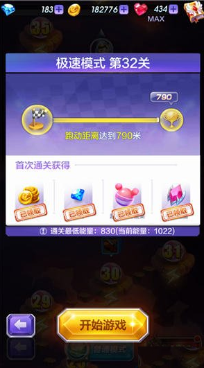 跑动距离达到790米,通关本关的最低能量需要达到830点能量,如果能量没有达到的小伙伴们赶紧提升自己的人物吧!
