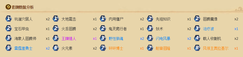T7找3费以下也是狼魂优先,带治疗波也是为了针对T7和冰法,可以吃科学家不动就行了。中速猎的话55开吧前期和T7打法差不多,遇到的不多。