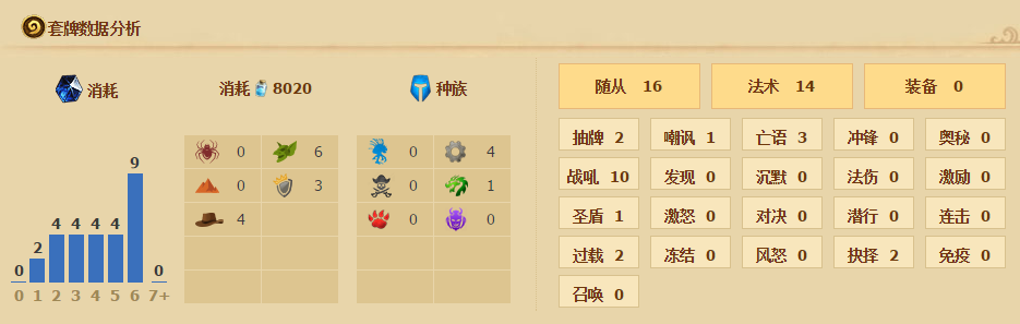 这副套牌的最大特色就是大表哥--死亡之翼,死亡之翼的作用并不是顺风给你一个随从,而是快死掉的时候给你一个返场的机会,之翼的应用正正是这副套牌的技术差别,决定你是卡15,还是卡5000的关键。