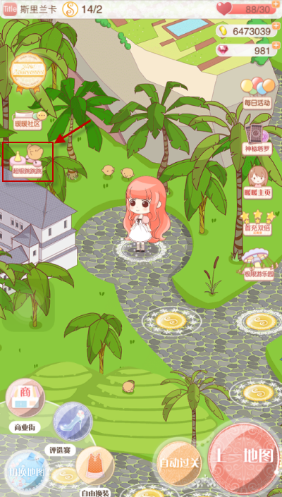 登录到暖暖环游世界的主界面中,就能够看到如图的位置,就是超级跳跳跳的活动界面了,