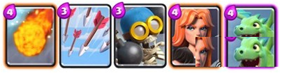 在等级差距太大的情况下,单卡拼单卡会很难赚取费用优势,骑士拼骑士,即使有我放箭塔输出,我剩下的那个骑士血量也不容乐观。可AOE完全不一样,用的好了完全可以低费赚N费,所以我的卡组带足了AOE手段,目的就是赚取费用优势。