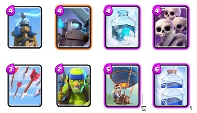 箭雨防对面人海或辅助气球进攻,为气球清前场。