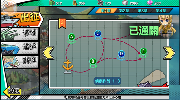 出征副本就是普通副本,每个关卡都有各自的航线,我们只需要最终打败红X标记的那个BOSS关卡就能抵达下一个关卡了。