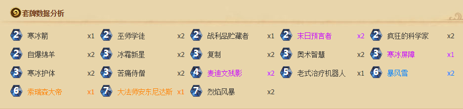 这套卡组前期思路就是苟活,依靠各种控场法术:冰环末日、暴风雪、烈焰风暴等,视频中狗哥也是撑到了自己的疲劳阶段,具体打法大家可以看看视频中狗哥的操作吧!