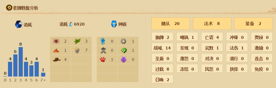 野性狼魂:狼魂肯定要带一个,前期强力站场加护脸,特别是2费硬币狼魂,超强。不过也要注意过载问题,不要想错了,卡住了下回合要下的生物。一费穴居人,二费硬币狼魂,这简直是要上天的节奏。