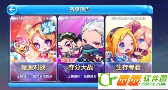 多种赛事模式,包括经典对抗、夺分大战、竞速对战、生存考验