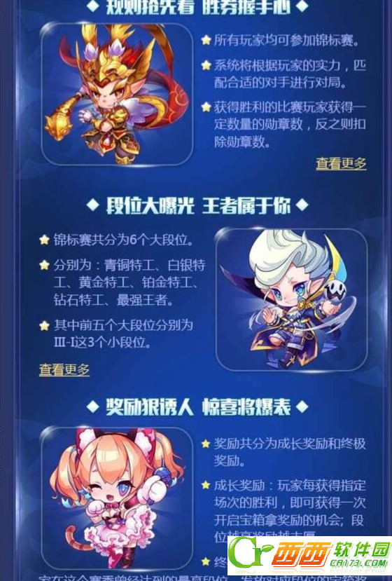 8、终极奖励:结算时,统计玩家在这个赛季曾经达到的最高段位,发放对应段位的宝箱奖励;段位不同,打开后的奖励也是不同的哦!