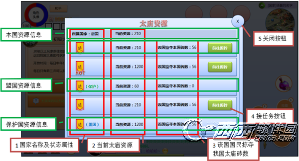 “查看太庙资源”包含玩家当日已完成的太庙搬砖次数,该数目每完成一次任务后加1,每日00:00重新从0计数,玩家点击该按钮,弹出如下太庙资源榜界面: