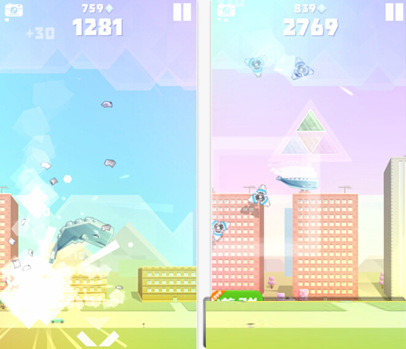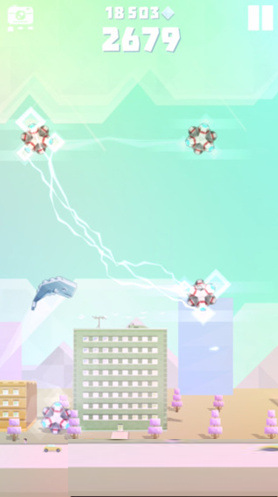 至于操作也是非常简单,点击屏幕即可让巨大鲸跃起,每次跳跃距离的长度取决于按住屏幕的时间。如果在它身处空中时再次点击,就可以释放特殊技能二段跳。