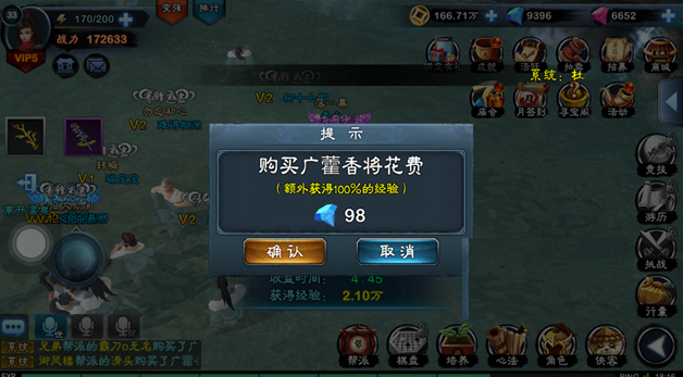 注意:我们购买的额外经验加成道具是从我们购买的时候开始生效的,所以我们务必要在刚刚进入温泉的时候就立马购买香料。什么时候买什么时候加成,过去的时间就过去了,不会给你额外的补贴。因为他是每过几秒加一次经验,而不是10分钟后一次性结算的。