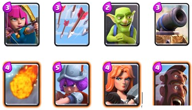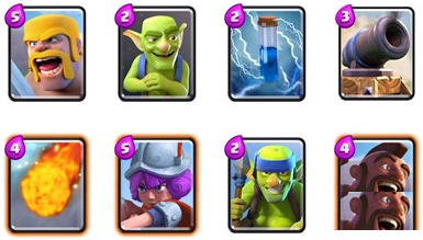 除了野猪,不要小看别的牌,有一次我靠着半血的女武神和两个哥布林,把对面副塔一大半的血磨没了,只要防住了,就利用剩余部队,加入一些新的低费兵,进行一波小的反扑。