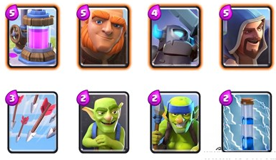 哥布林也是一张比较重要的牌,首先是解牌,解王子,背刺女巫‘法师等。然后哥布林的输出以及机动性都非常高,在没有胖法的情况下可以和皮卡形成一波突进,如果进塔输出能力也是爆炸,不是一路也是残。