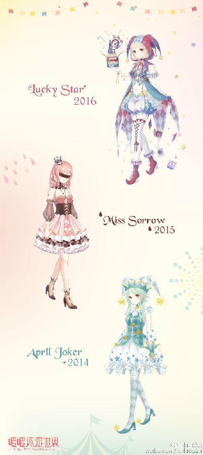3、2014年和2015年愚人节套装【April Joker】【Miss Sorrow】也将在同一时间上架神秘商店,大家可以根据部件的收集度选择性购买;
