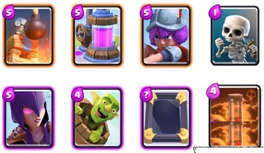 炸弹塔一定乘早下,对面出猪就下骷髅,冰冻出来就再补一个火枪或者镜像骷髅或者女巫,如果猪后有法师一定要下毒,如果没这么多水。。。说明你前面一定憋不住就乱扔木桶了。