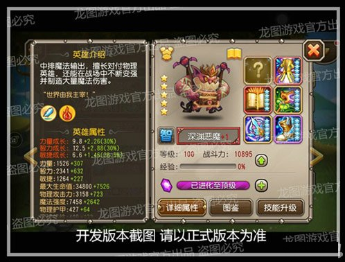 博学社60级状态下,100级满装满附魔属性。未觉醒的深渊恶魔拥有4W1的血量和530的魔抗,觉醒后在血量、魔抗上还有提升,这些对于一个中排法师来说已经满足了其生存条件;再看输出方面,深渊恶魔有着超高的法强和魔法暴击,在法师中名列前茅。
