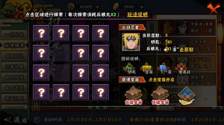内容 声望2500、随机b级忍者碎片20、5级绿勾玉、忍玉600、金币200、魂玉。