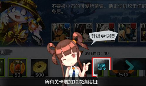 不管你有没有VIP等级,每一位小伙伴都可以在任意三星通关的关卡中永久使用十连扫荡的功能!