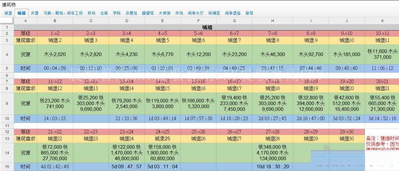 建造时间仅供参考。因为建造时间会因每个人科技升级程度不同而有所差异。