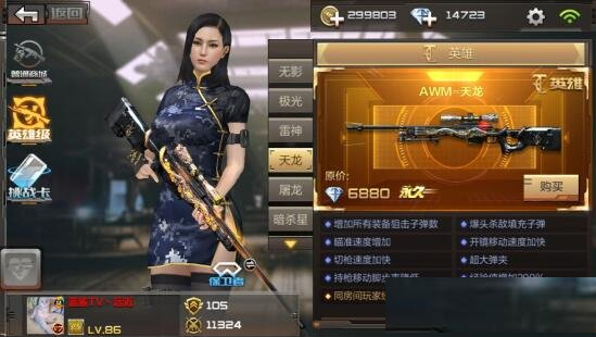 天龙加屠龙 双龙合璧 简直就是人间杀器 极致的切枪速度让人不敢相信,天龙的精准秒杀 超高的瞄准速度 配上屠龙的急行军 让一个狙击手变得灵活起来,土豪首选。