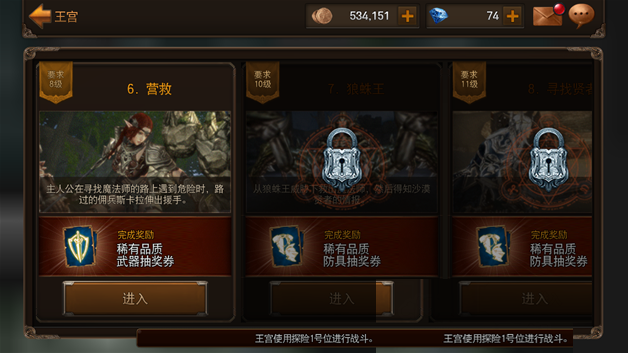 在前面的关卡中我们获得的金币、荣誉值都是很少的,获得的装备品质也是很低的。到了后面获得的东西就多了。