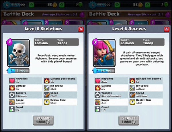 这些绿皮生物是卡组中的中坚力量无可替换,一共八张卡就有四张跟这两只哥布林脱不了关系。他们是开局优秀的探路兵,中期的优秀炮灰,以及双倍圣水时期的核心爆发。数量多、攻击高、攻速块、移速快都是他们的优点,但是缺点很明显,就是血量确实感人,往往成群结队的哥布林被对手一个箭雨就全部蒸发。