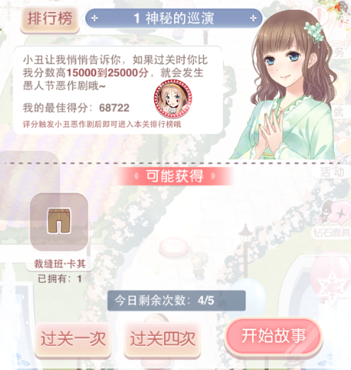 奇迹暖暖的愚人节的活动正式开启,这次的活动也是要通过几个固定的关卡才能够顺利的获得小丑面具来兑换套装,不过这次的关卡的玩法有着不一样的变化,暖粉们要搭配到一定的得分区间内,才能够掉落当前关卡最多的面具,这里为大家整理了奇迹暖暖小丑与钻石面具的第一关高分的搭配,欢迎暖粉来一起做一个参考吧。